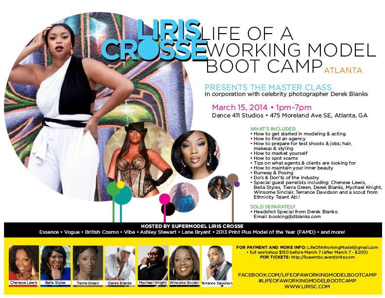 March 15, 2014- Guest panelist at the Liris Crosse “Life Of A Working Model Bootcamp” in Atlanta, GA